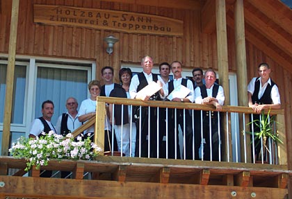 Betriebsjubiläum bei Holzbau Sann Stolz konnte am 01.08.2003 Bernd Lichtenfels (Bild) die Ehrenurkunde der HWK für 20-jähriges Betriebsjubiläum von Obermeister Weiler entgegen nehmen. Am 01.08.1983 trat Herr Lichtenfels als damals noch „Lehrling” genannt, seine Lehre zum Zimmermann an, die er 3 Jahre später als Kammerbezirksbester mit großem Erfolg abschloss. Auch am anschließenden Berufswettkampf der Junggesellen war er mit sehr gutem Ergebnis in den vorderen Reihen dabei. |